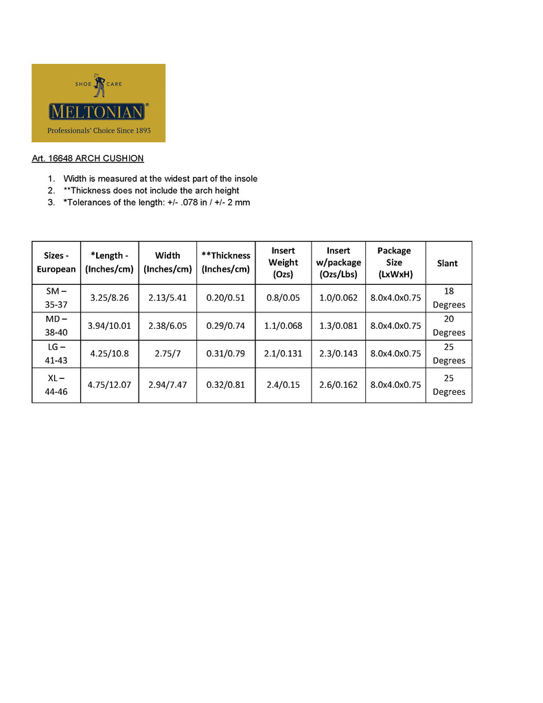 Meltonian® Arch Cushion is a symmetrical shaped arch support wedge made from durable, and high quality vegetable tanned leather. Meltonian® Arch Cushion helps prevent further development of flatfoot, provides proper support for the medial longitudinal high and medium arch. Tacco 624 Arch Cushion